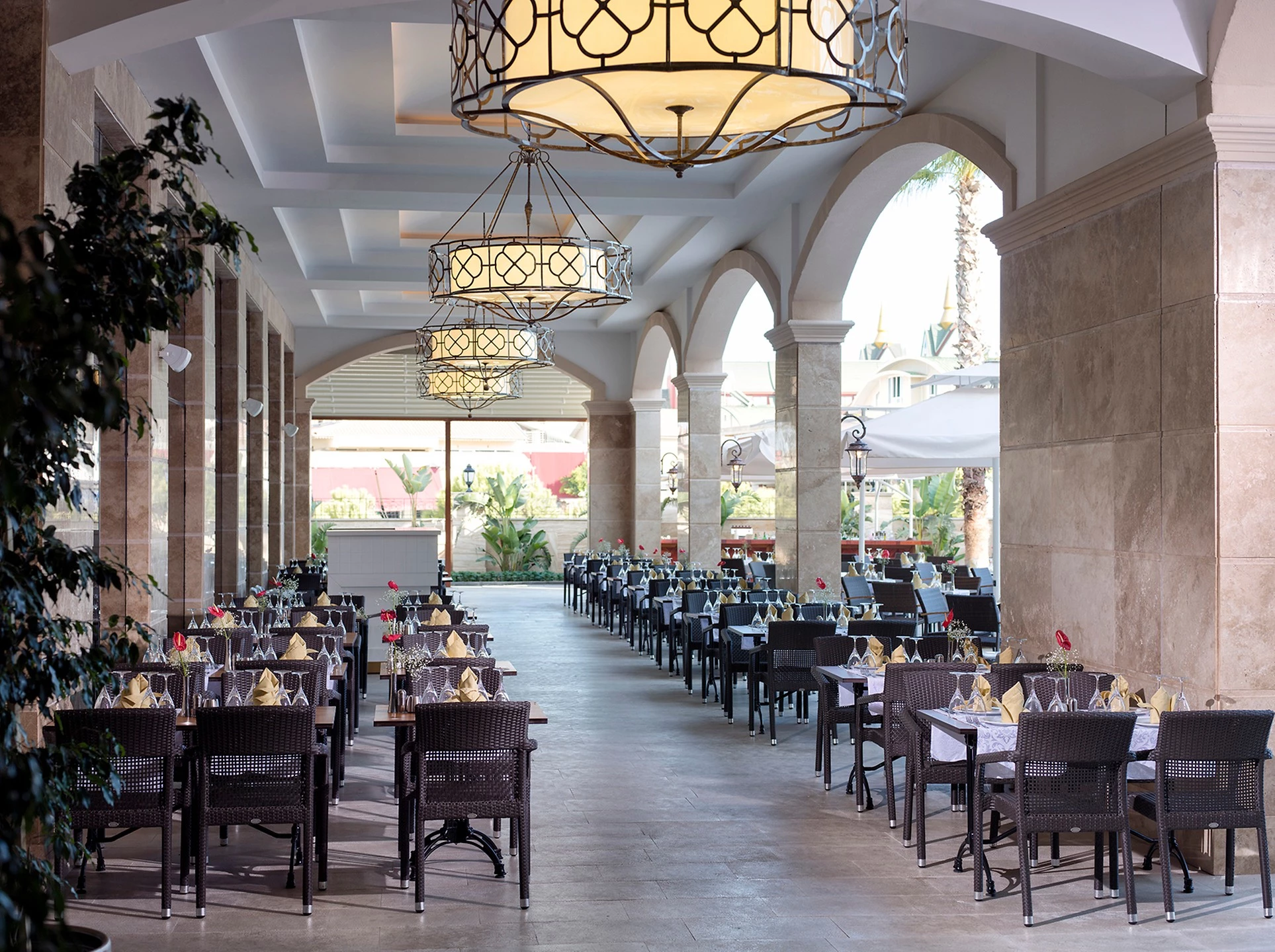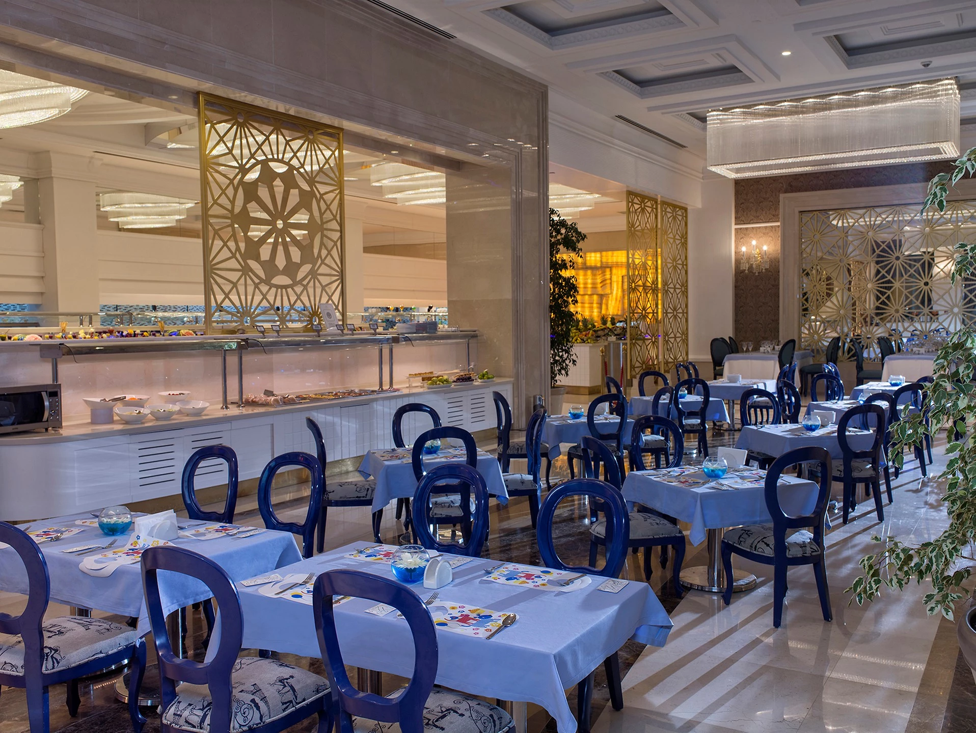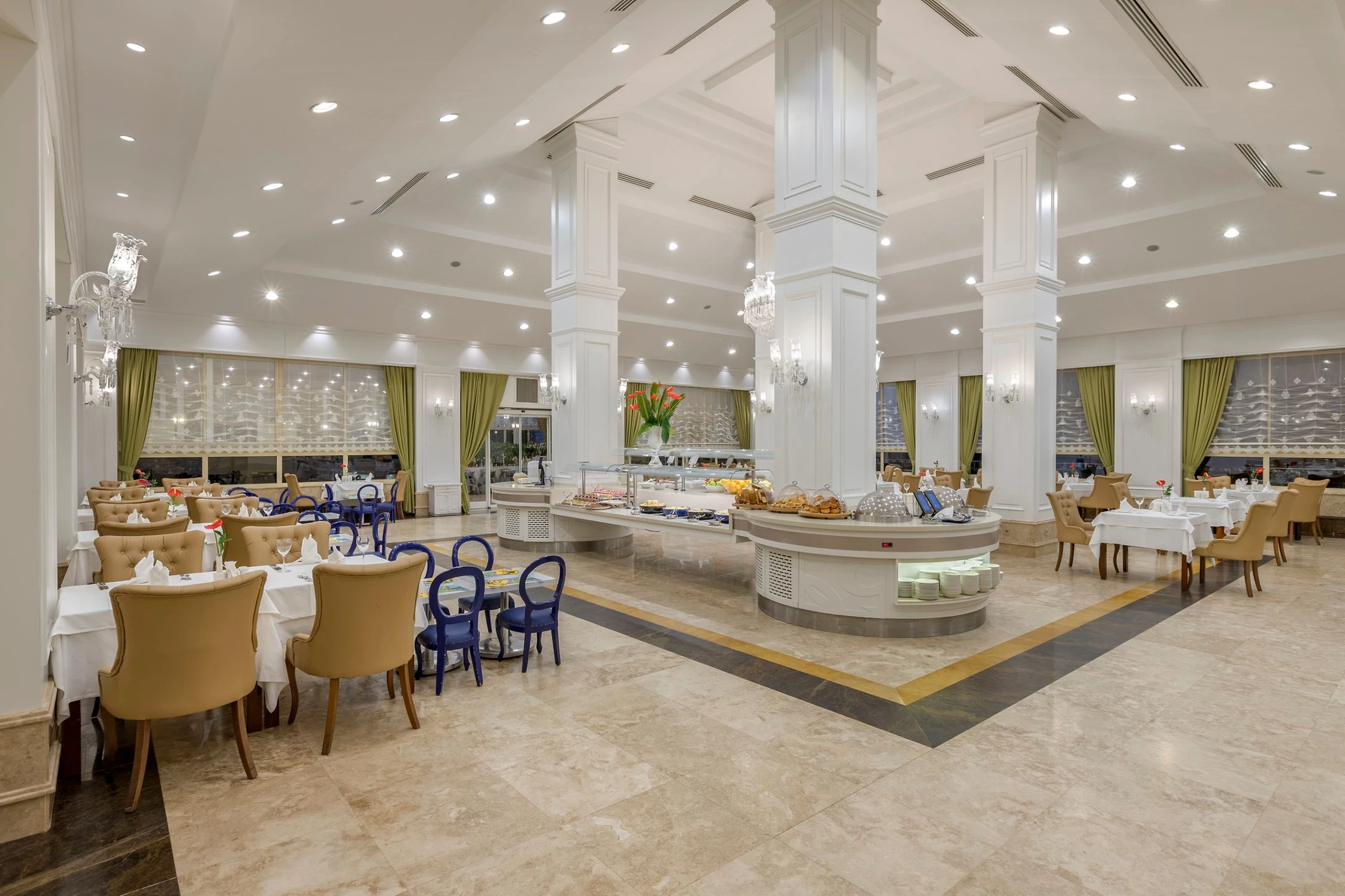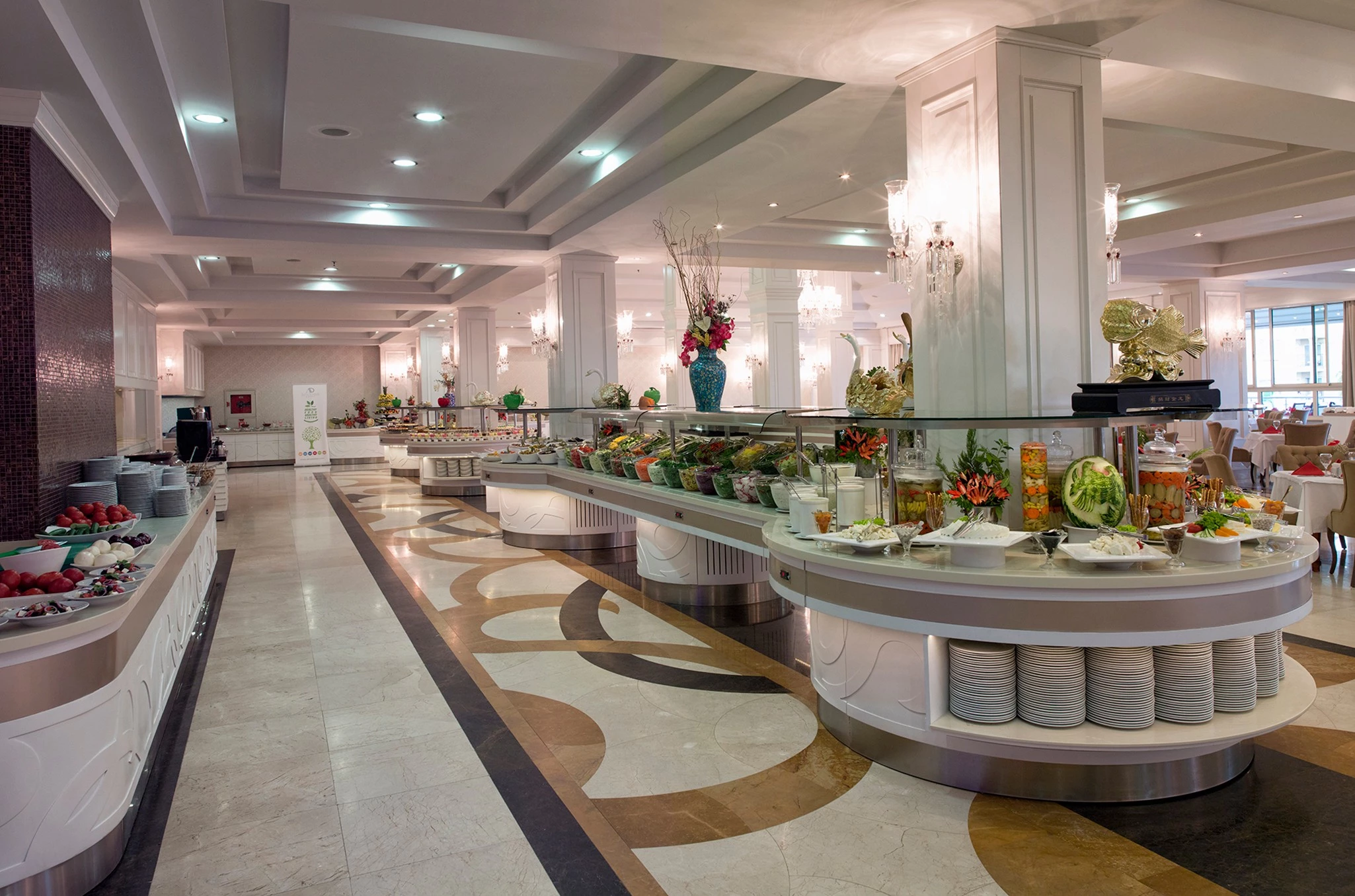 Breakfast, lunch and dinner buffet meals are free. Some local and foreign alcoholic and non-alcoholic beverages are free of charge for 24 hours within the brands determined by the facility. Minibar is filled with beer, water, milk, chips, wafers and soft drinks every day. A 50% discount is applied for children between the ages of 6 and 12 for a la carte restaurant reservations. A la carte restaurants with reservation and charge.