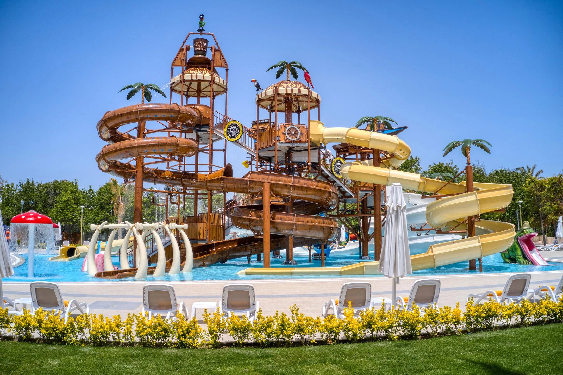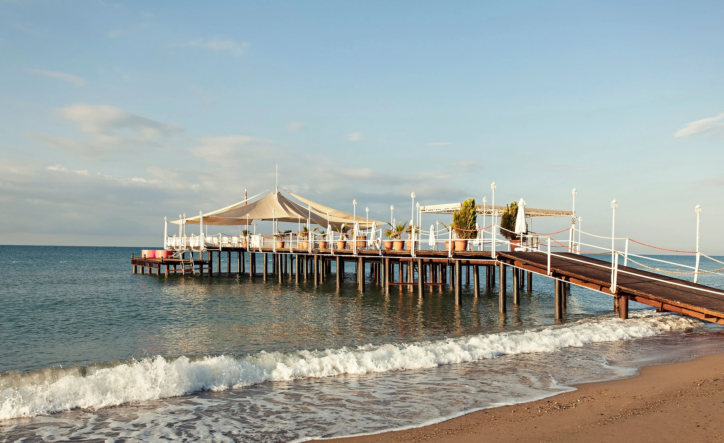 Located in Bogazkent, Antalya, Alva Donna Exclusive Hotel & Spa promises a comfortable and enjoyable holiday experience with accommodation and activities that appeal to all ages. Located at the seafront, the property has a pier and stylish pavilions on its 300 m long beach. Guests can also choose to swim in the outdoor pool of the facility. The facility, which has an aquapark and swimming pool for children, also has aquapark entertainment for adults.