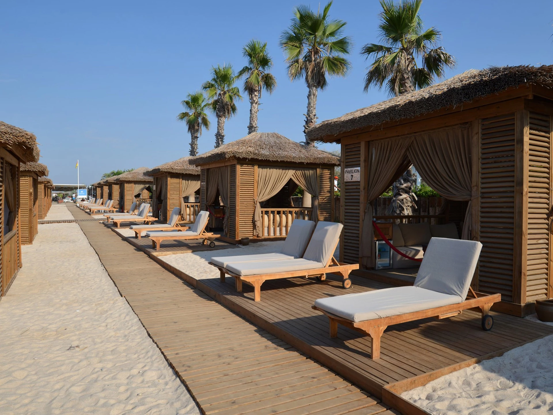 The facility has a 300 m long sandy beach and pier. On the beach and in the pool; Umbrellas, sunbeds, mattresses and towels are free of charge.