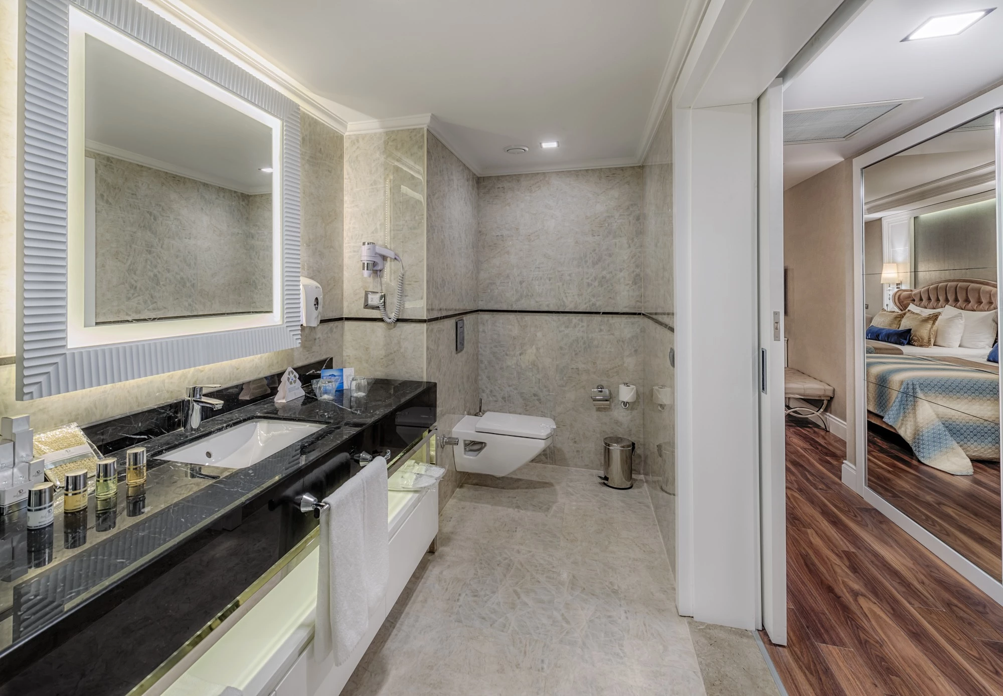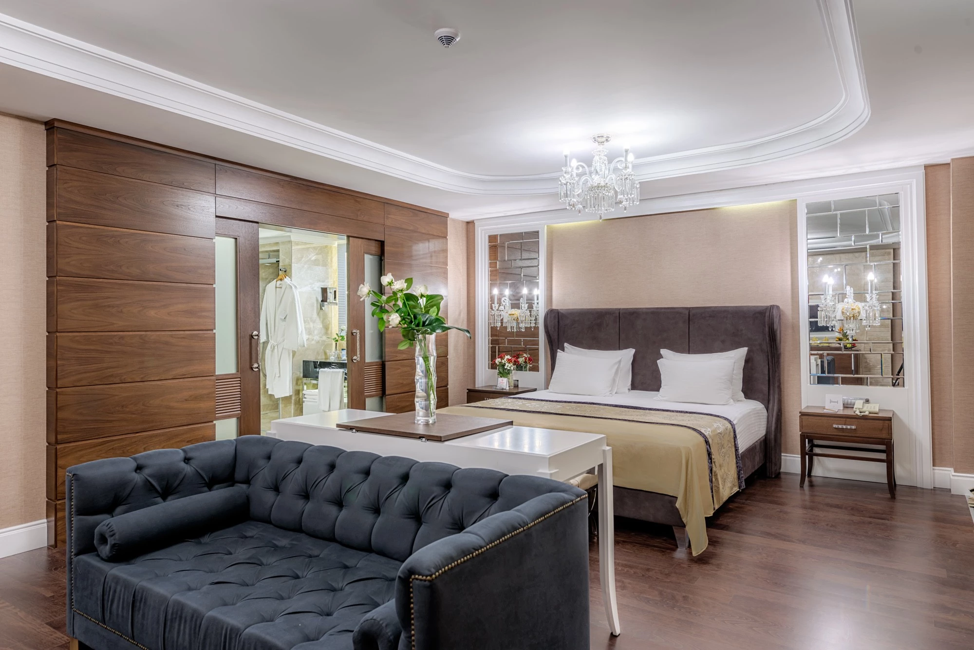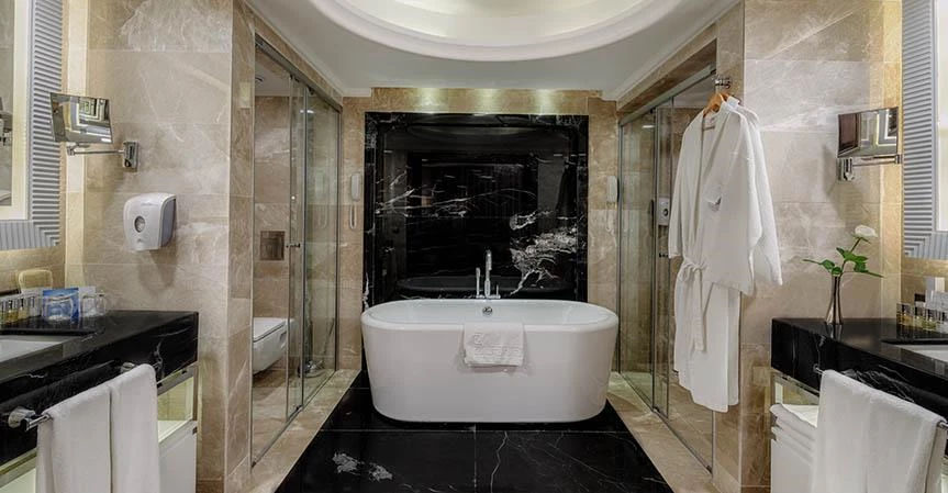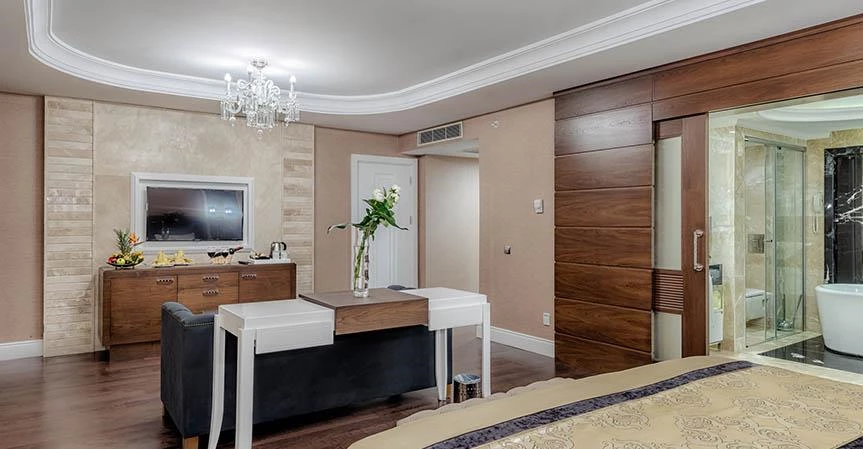 Deluxe rooms of the facility do not have twin beds, only French beds. The Deluxe Block within the facility is separate from the main building and is a block built in 2013 and equipped with the latest technology. The connection of the Deluxe Blok with the main building is provided by an overpass. Deluxe Block section has its own indoor and outdoor pool, children's pool and pool bar. Guests staying in the deluxe building and the main building can benefit from the services of both blocks.
