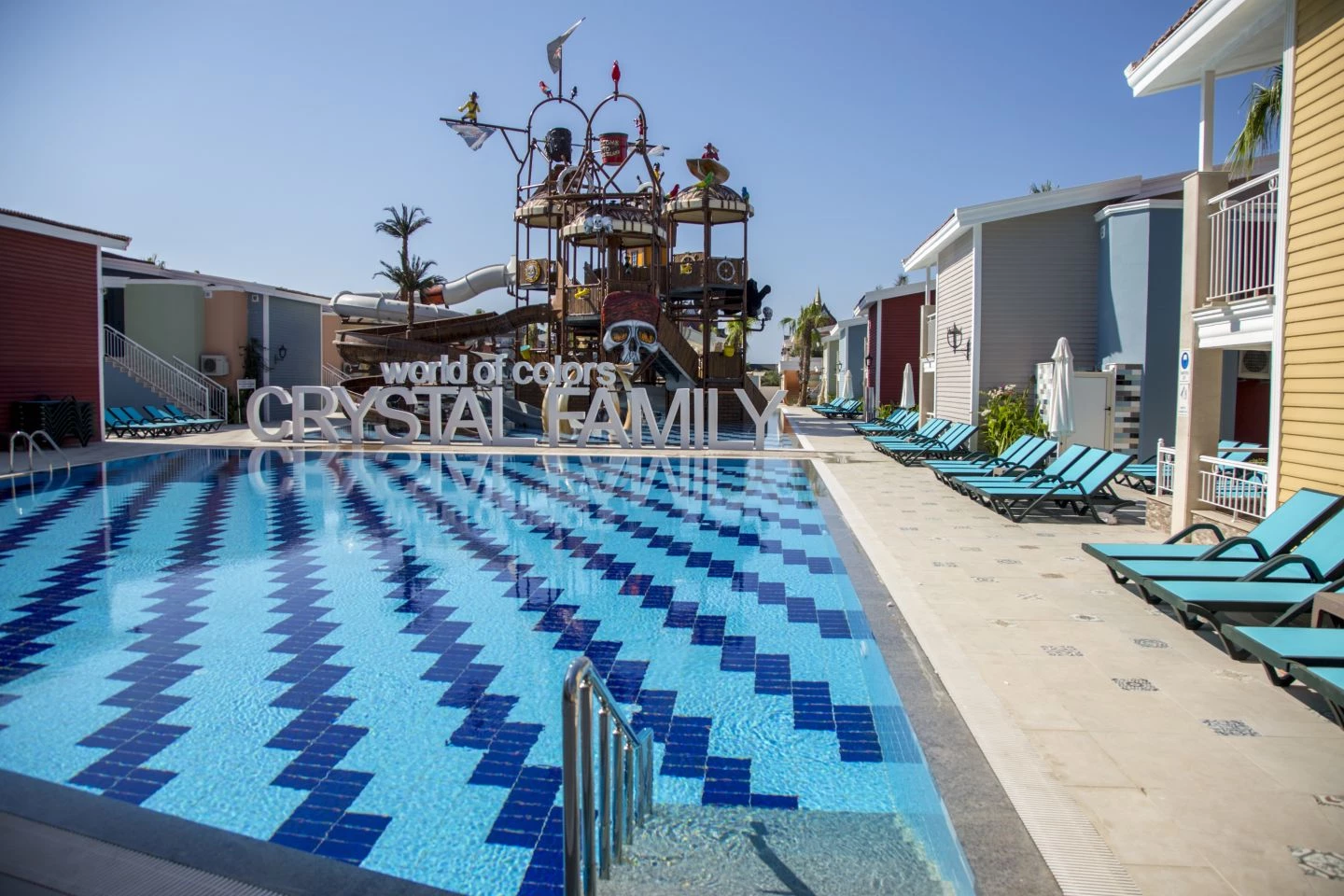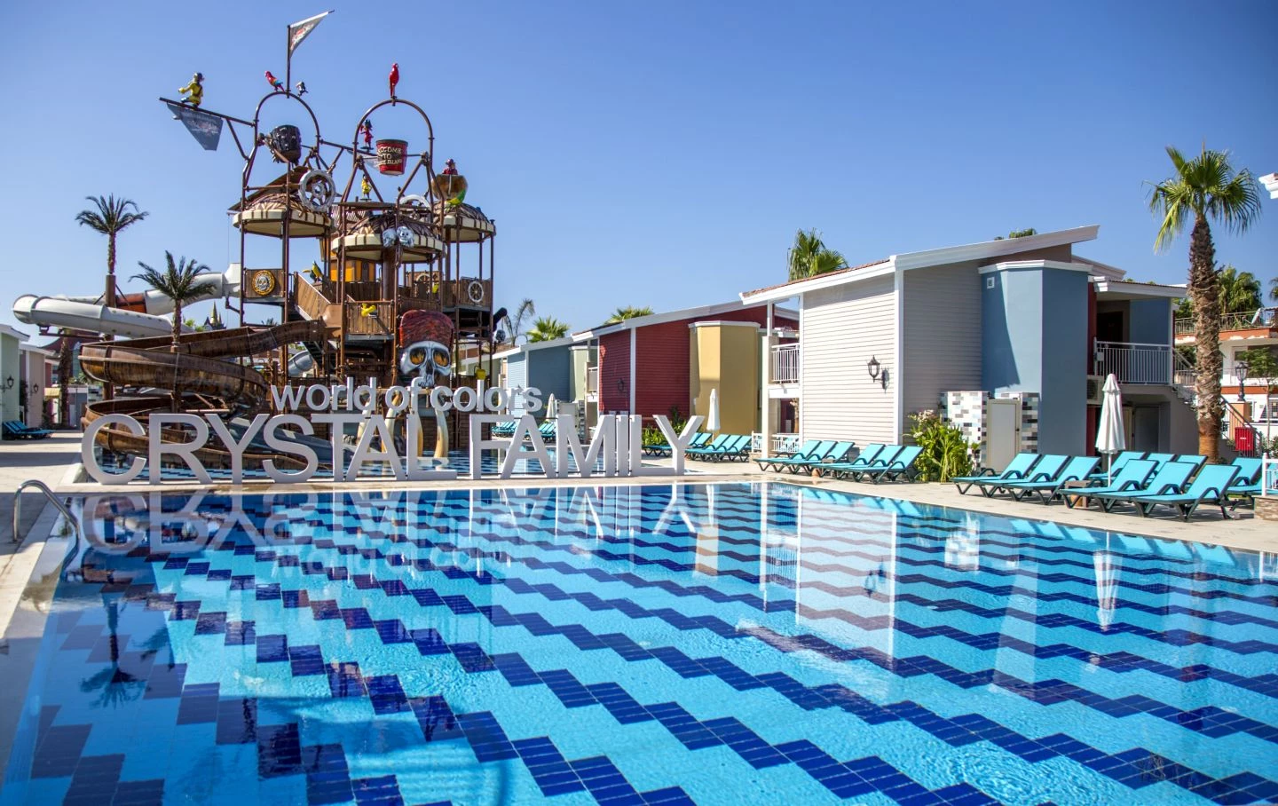 Crystal Family World Of Colors Resort & Spa, located in Bogazkent, the holiday paradise of Antalya, offers its guests a pleasant holiday with its warm architecture, comfortable and spacious room structure, and its rooms, all of which are family rooms.