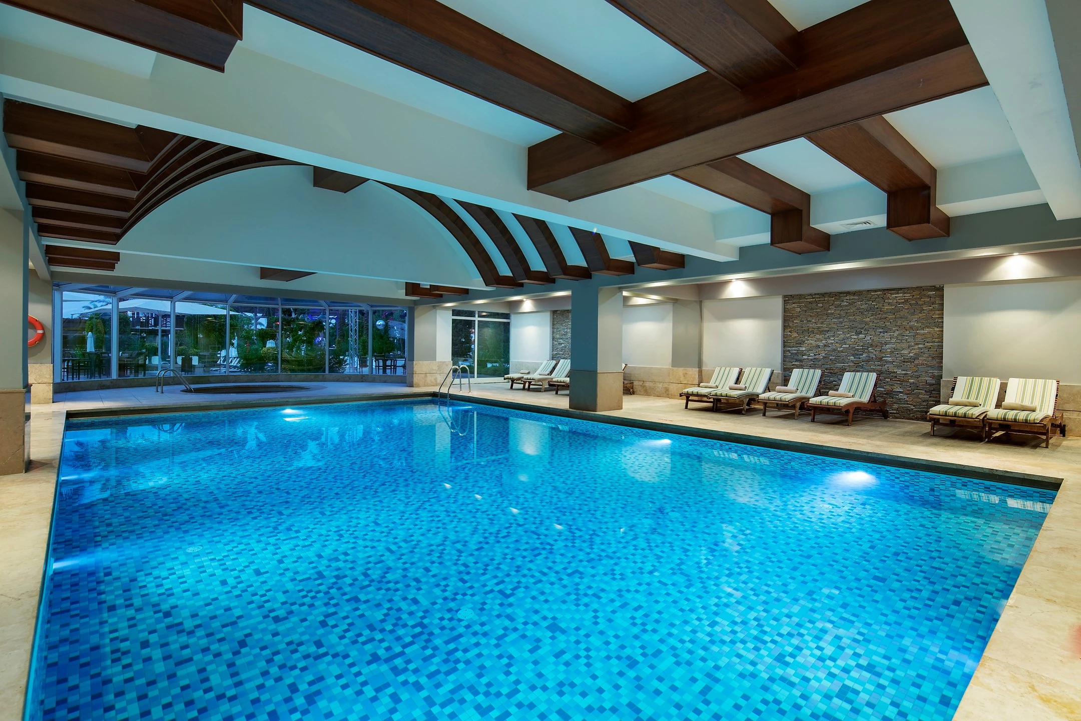 The SPA centre, Turkish bath, sauna and massage treatments within the facility provide guests with the opportunity to have a pleasant time. As an alternative to the sea, there are indoor and outdoor swimming pools in the facility.