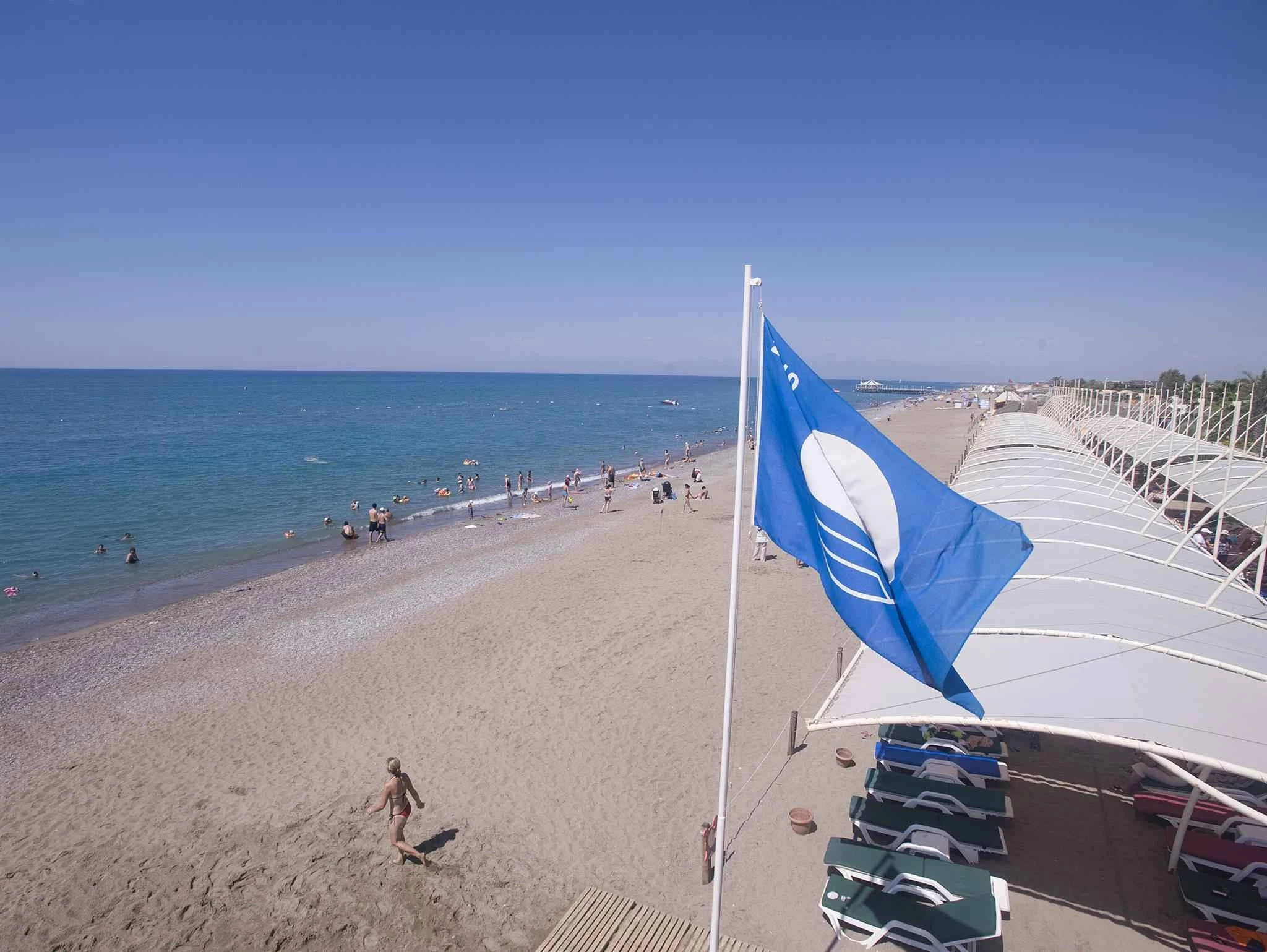 The facility, which is at the seafront, has a 150 m long sand and pebble mixed beach. Sunbeds, umbrellas and mattresses are free of charge on the beach.