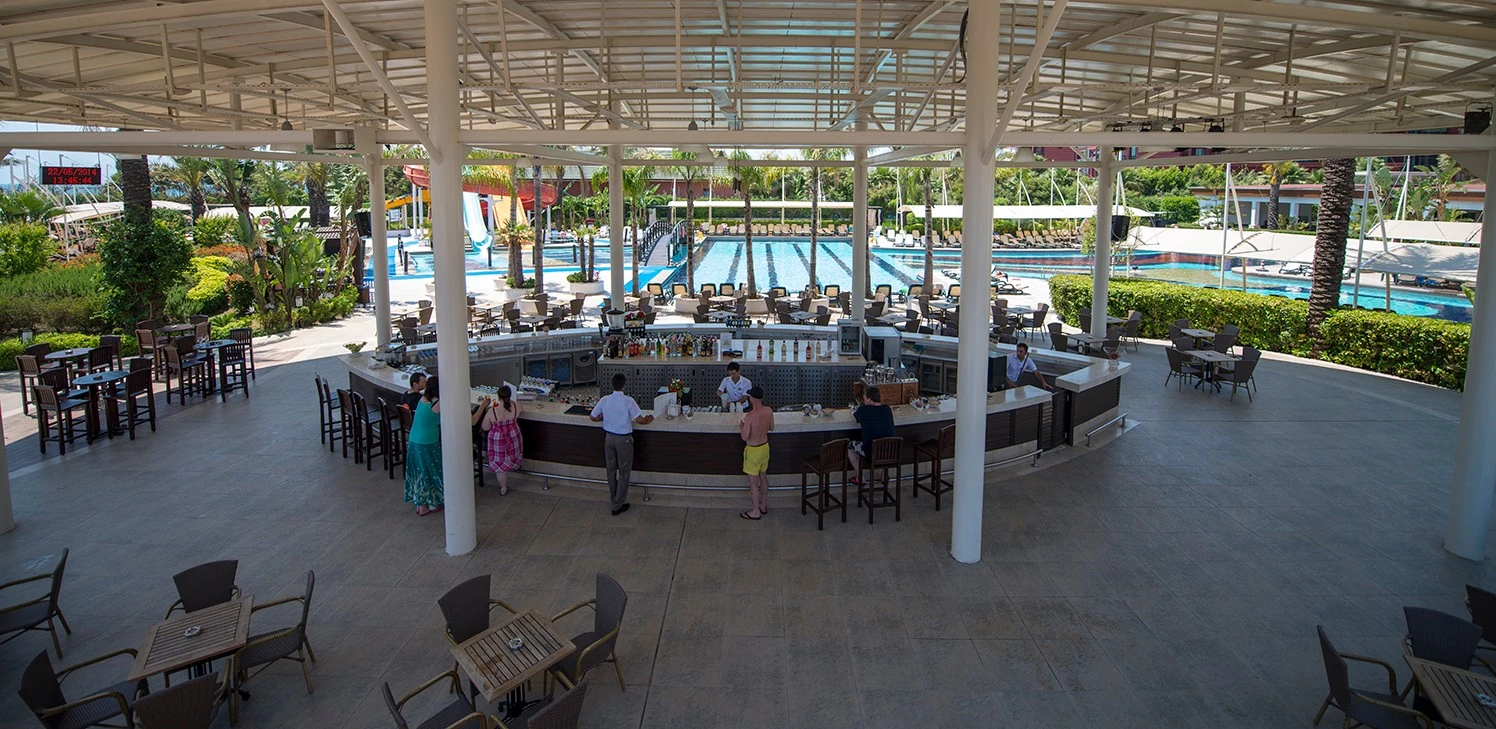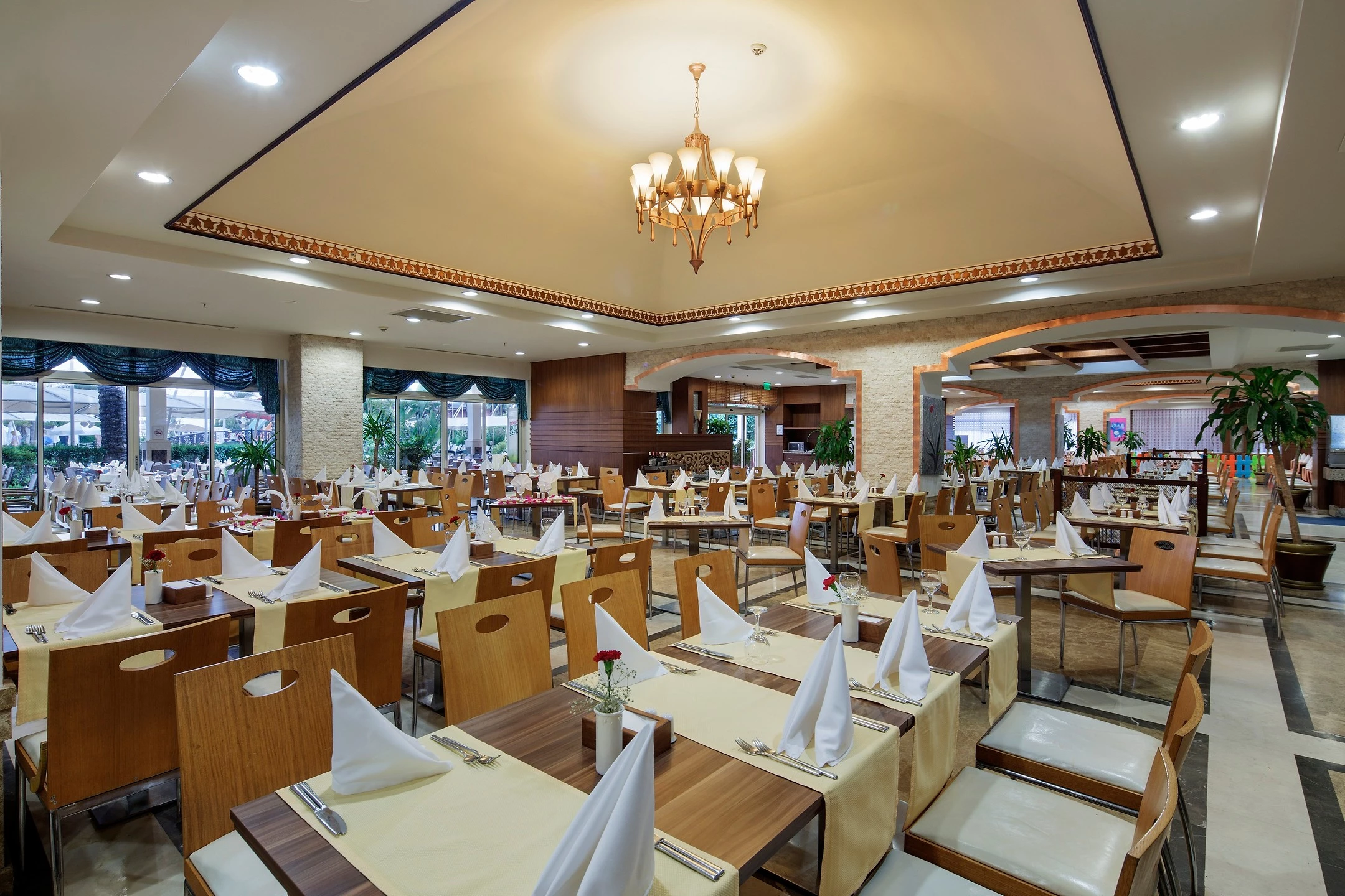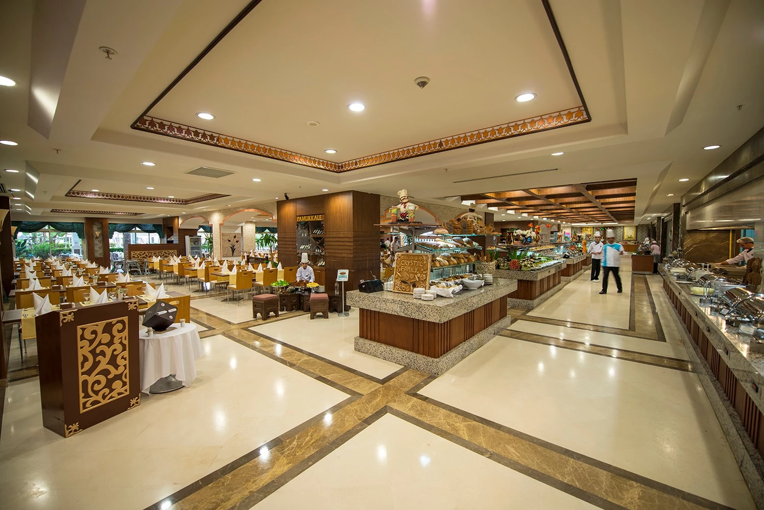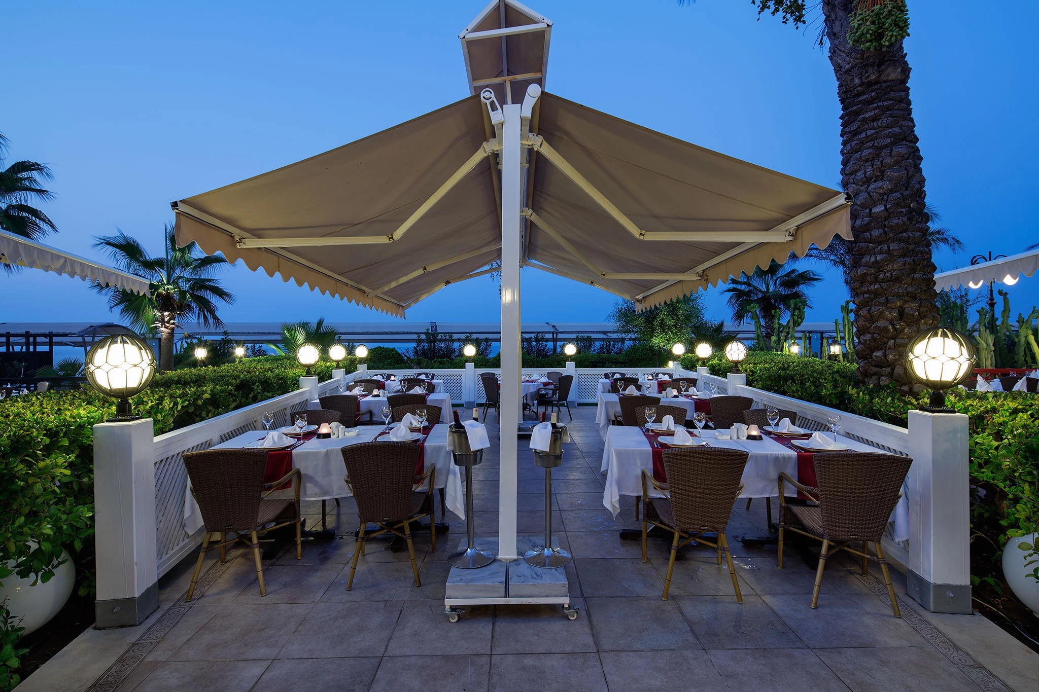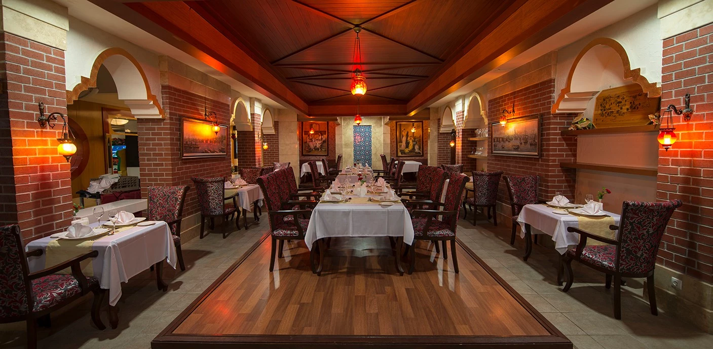 A la carte restaurants will only serve at dinner, and for stays of 7 nights or more, with a reservation and free of charge (except Halikarnas Restaurant). Halikarnas A la Carte Restaurant with reservation and charge.