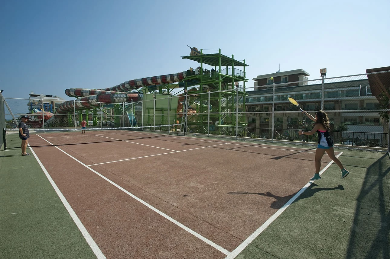 The SPA center, sauna, Turkish bath, steam room and massage treatments in the facility make the holiday more enjoyable for the guests. There is also a fitness center and tennis court for those who like to do sports and want to keep fit.