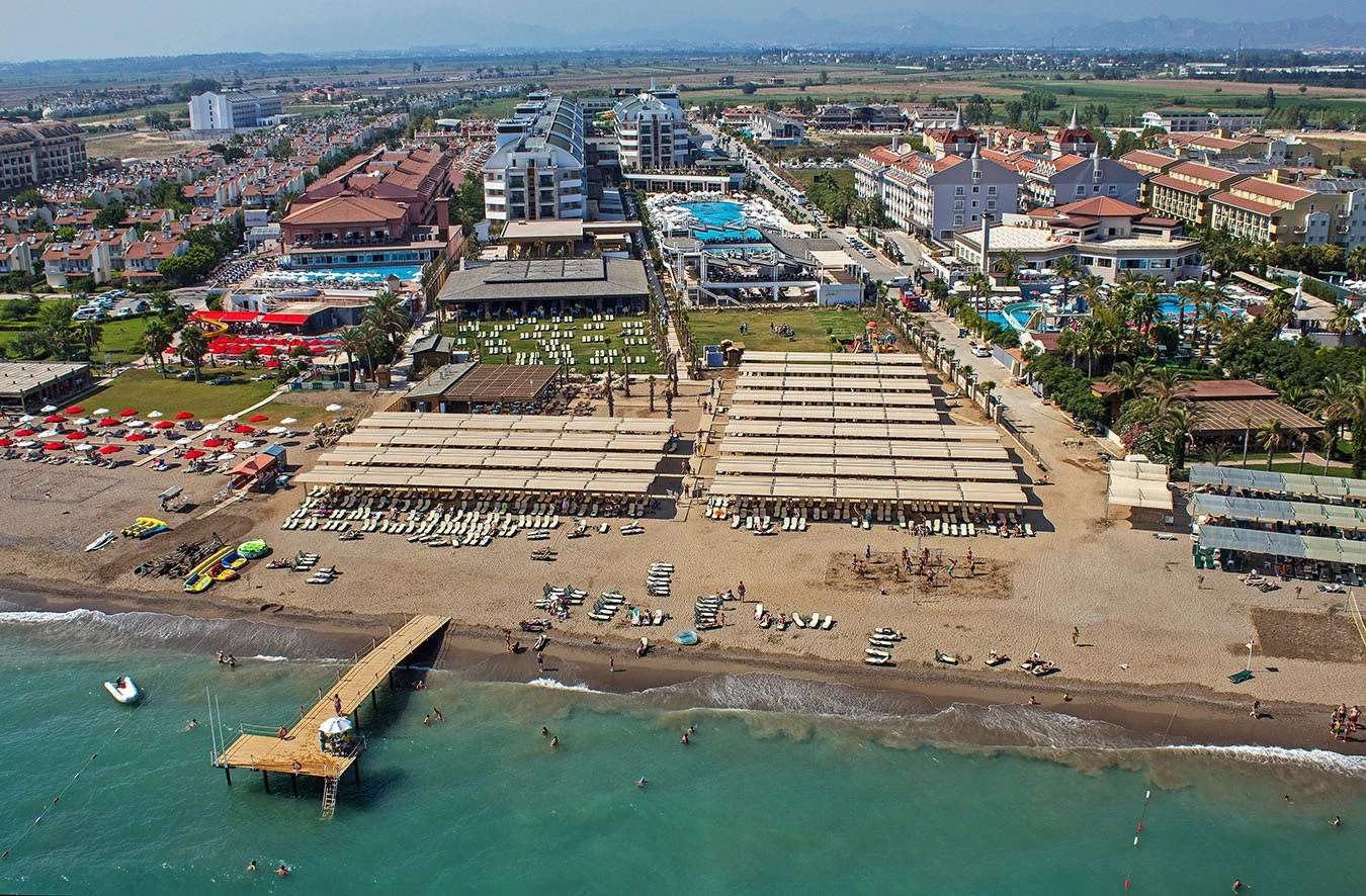 The facility, located at the seafront in Belek, Antalya's popular holiday resort; It is a suitable address for a pleasant summer holiday with its large private beach, comfortable rooms and activities that offer the opportunity to have fun for both the little ones and the adults.