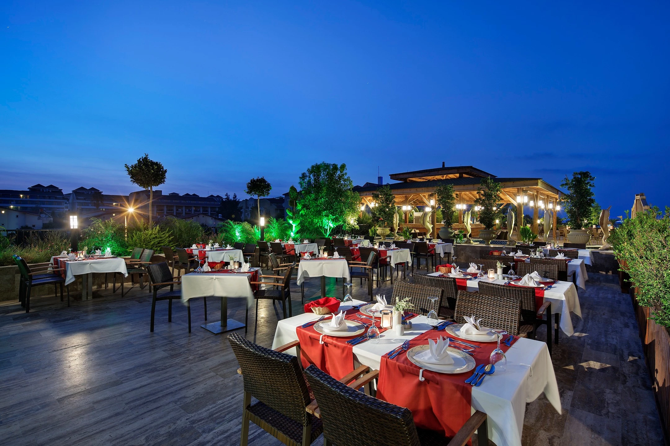Rich breakfast, lunch and dinner are served as open buffet. Tastes from Turkish, Far Eastern and Italian cuisines are carefully prepared by master chefs in the a la carte restaurants located in the facility.