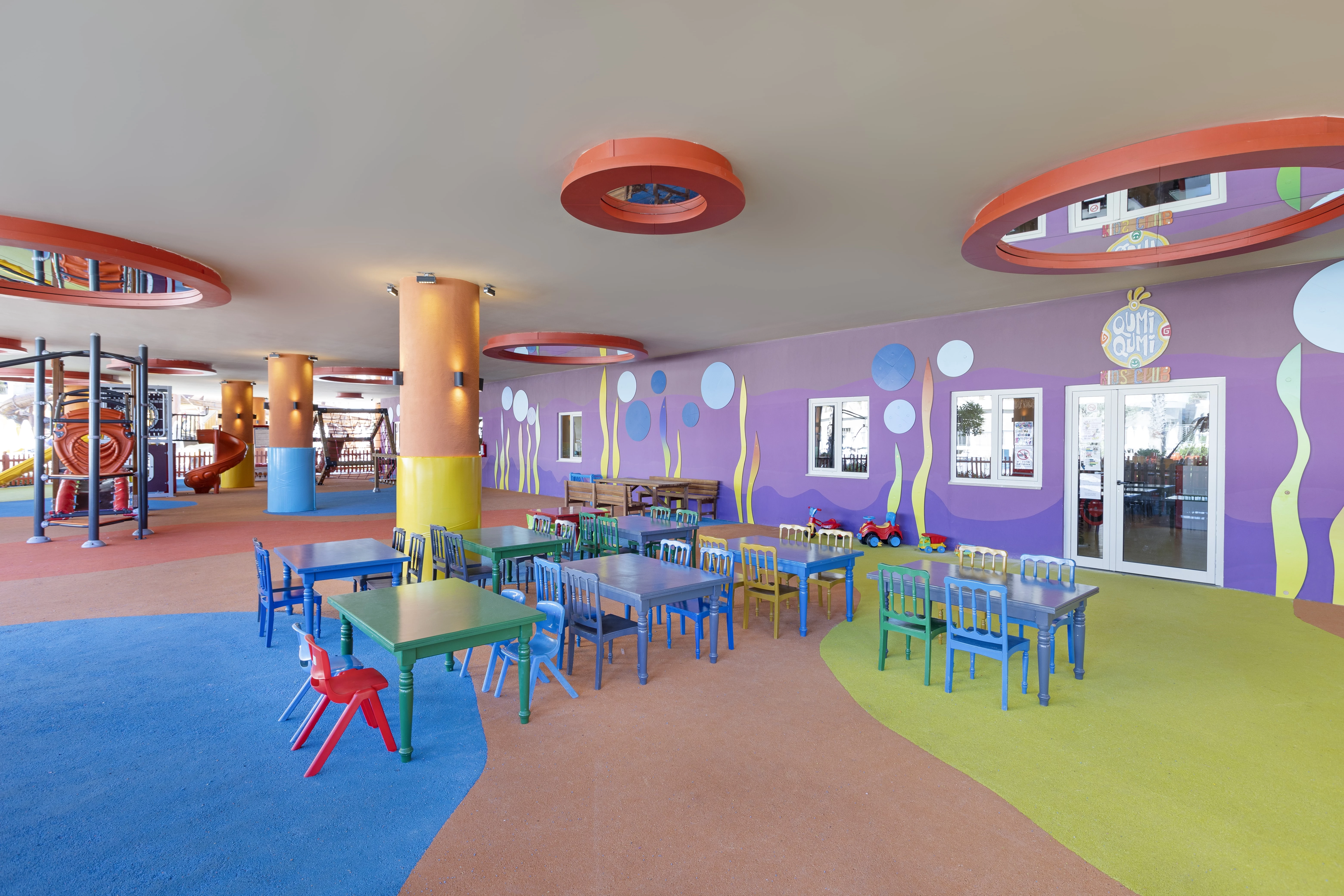 There is a special welcome and registration reception for guests aged 4-12, Indian camp, hobby garden, cookie and pizza event, cooking class, pirate day and playground, playstation room, outdoor playground, mini disco and various children's animations. It serves between 09.30-23.59 hours.