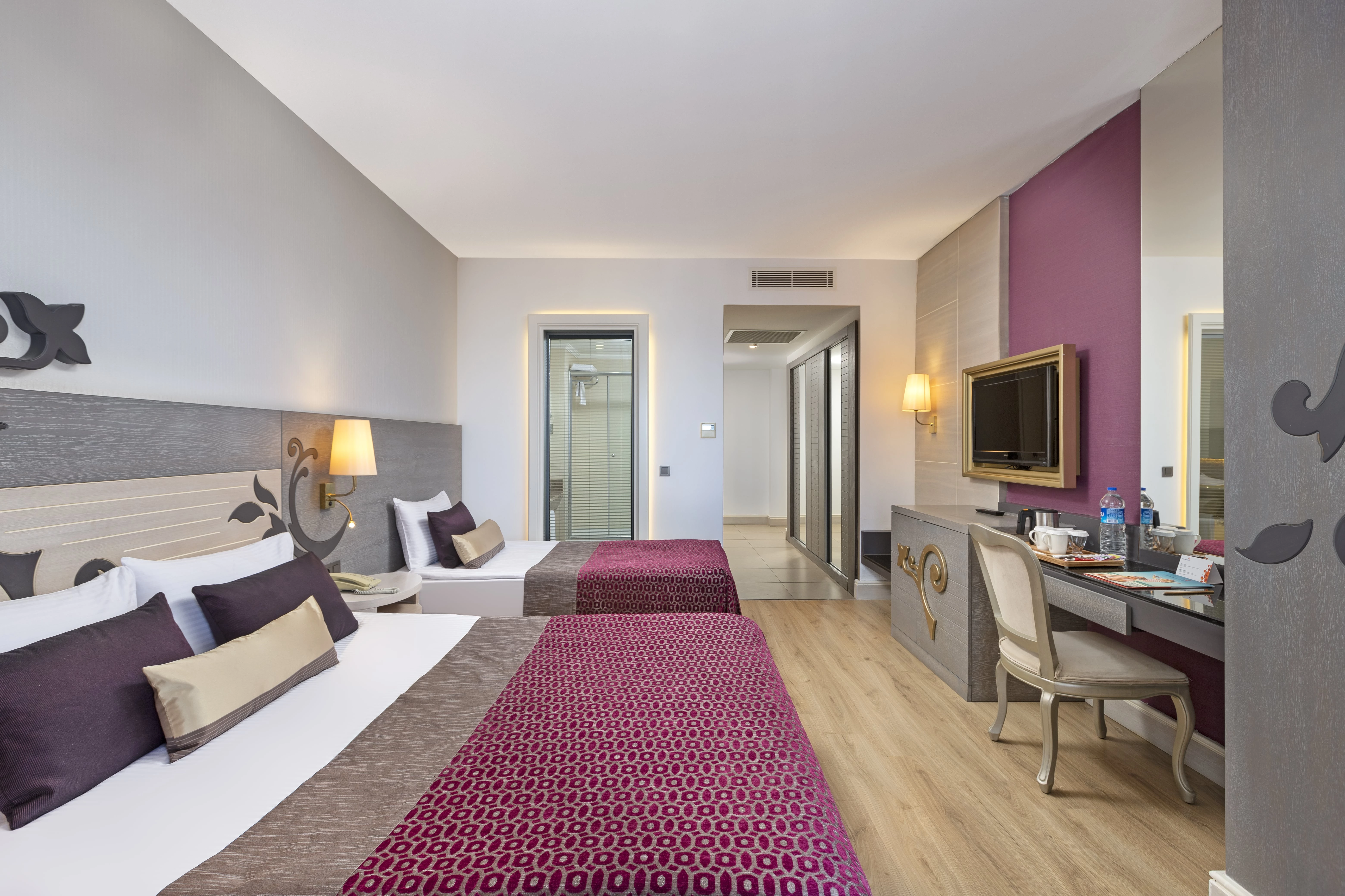 Breakfast, lunch and dinner buffet meals are free. Local alcoholic and non-alcoholic beverages within the brands determined by the facility are free of charge between 10.00-02.00. A la carte restaurants are free of charge and with reservation once for stays of 7 nights or more. 2 or more a la carte requests are charged. A la carte restaurants are open between 15 May and 15 October. The minibar is replenished daily with beer, water, soft drinks, chocolate and chips.