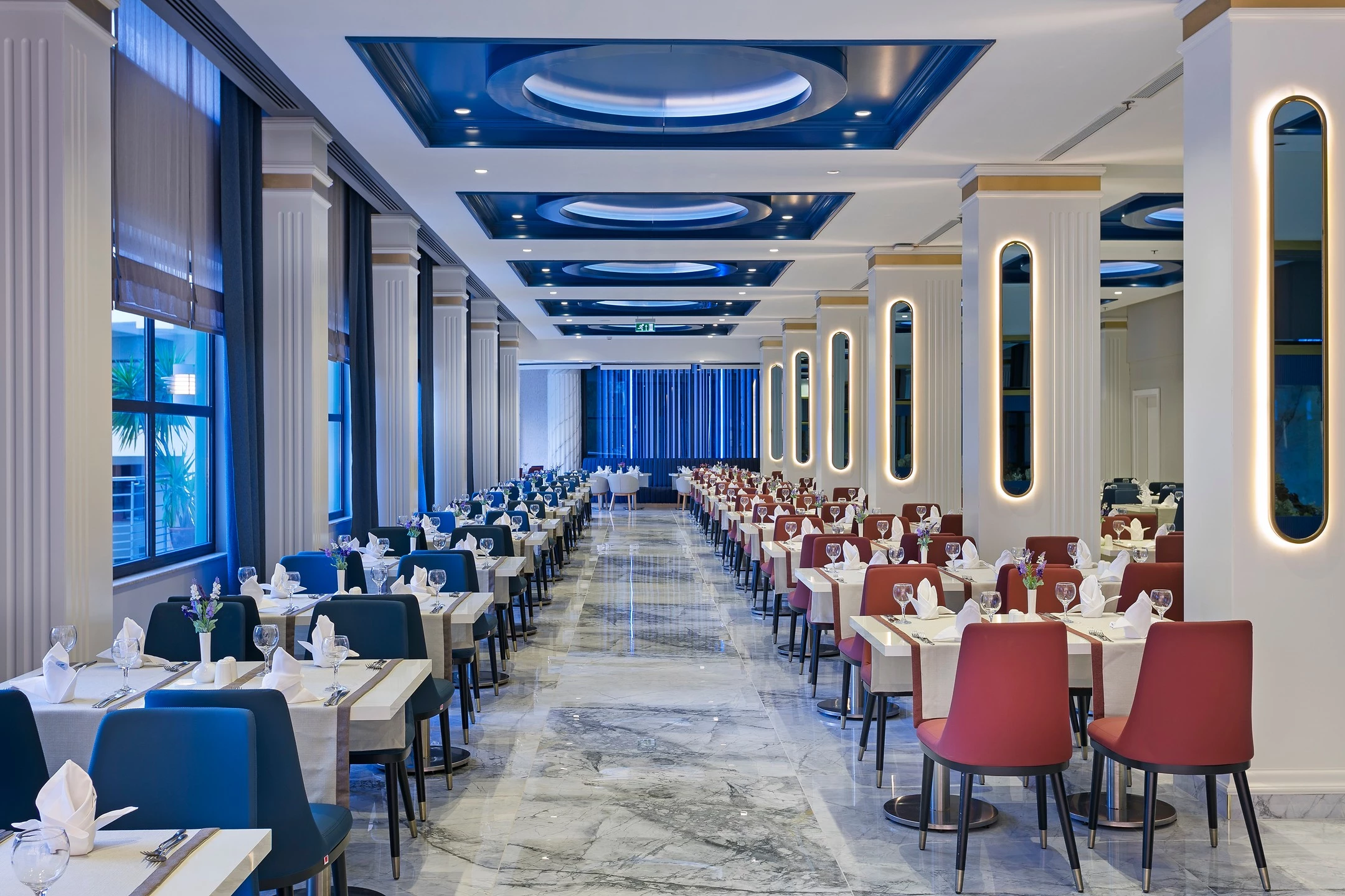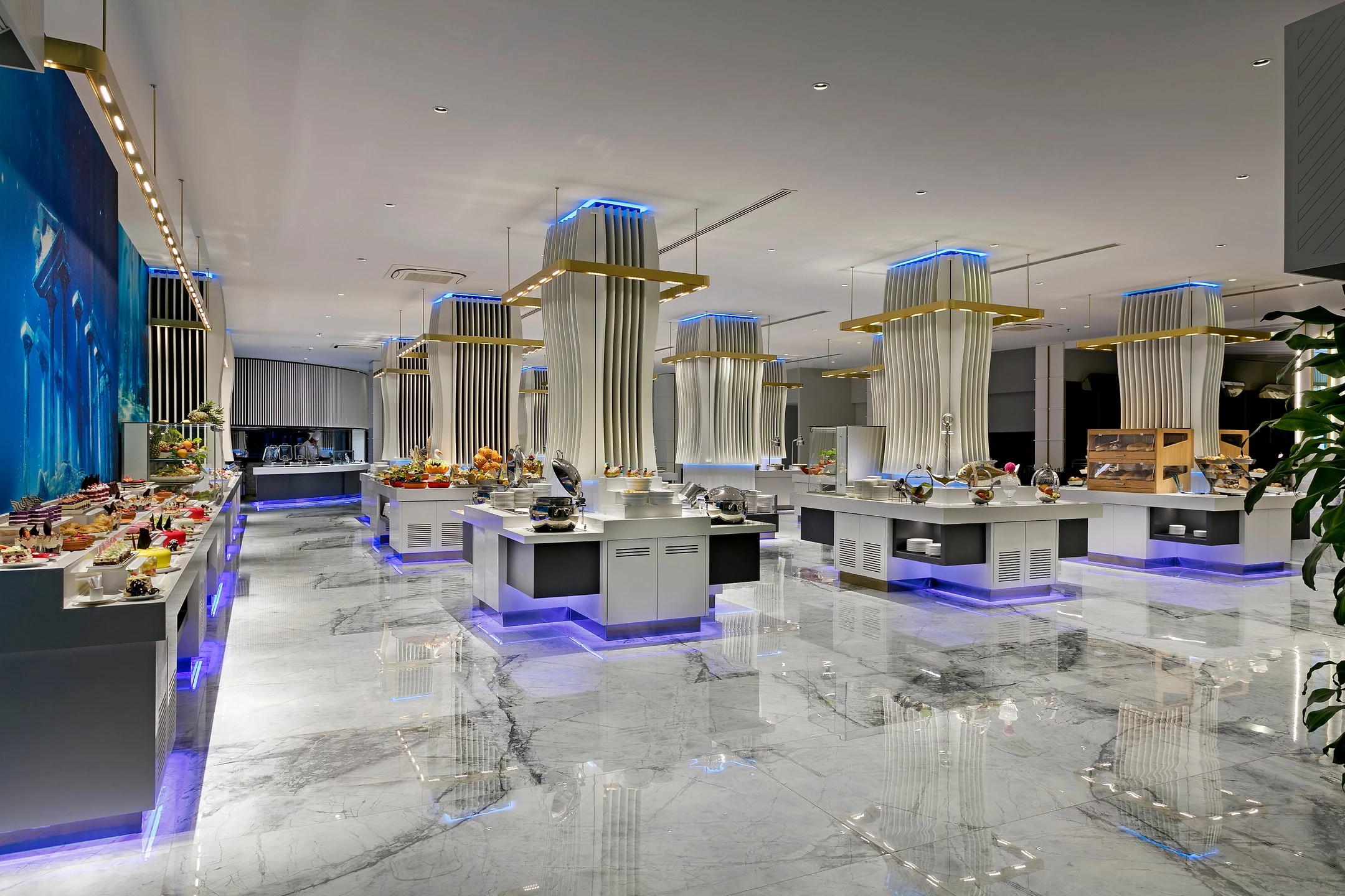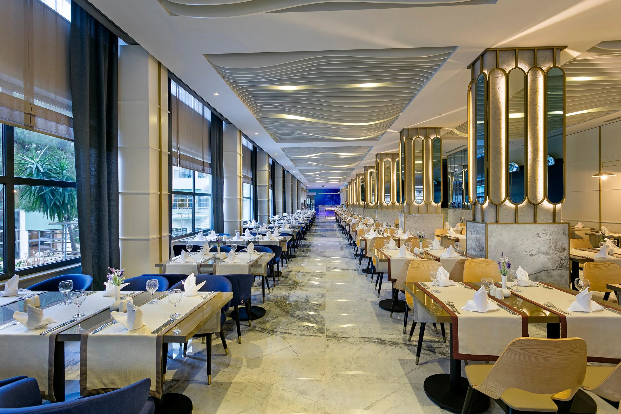 Breakfast, lunch and dinner buffet meals are free. Some local and foreign alcoholic and non-alcoholic beverages within the brands determined by the facility are free of charge in the lobby 24 hours a day. Fish, Mexican and Italian a la carte restaurants with reservation and charge, Turkish and Far East a la carte restaurants with reservation and free of charge. Disco provides free service within the concept between 23.00-02.00 hours, and paid service after 02:00.