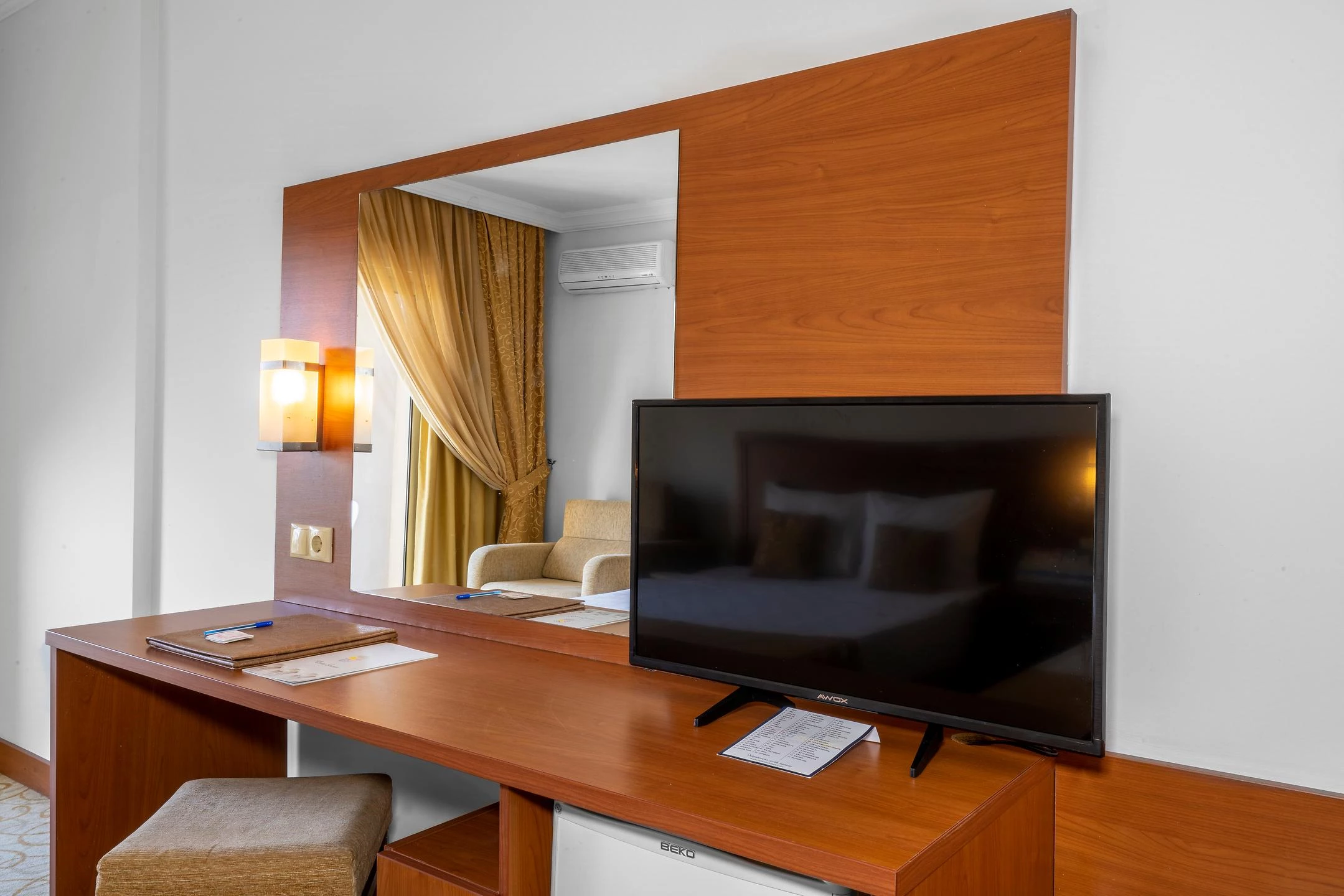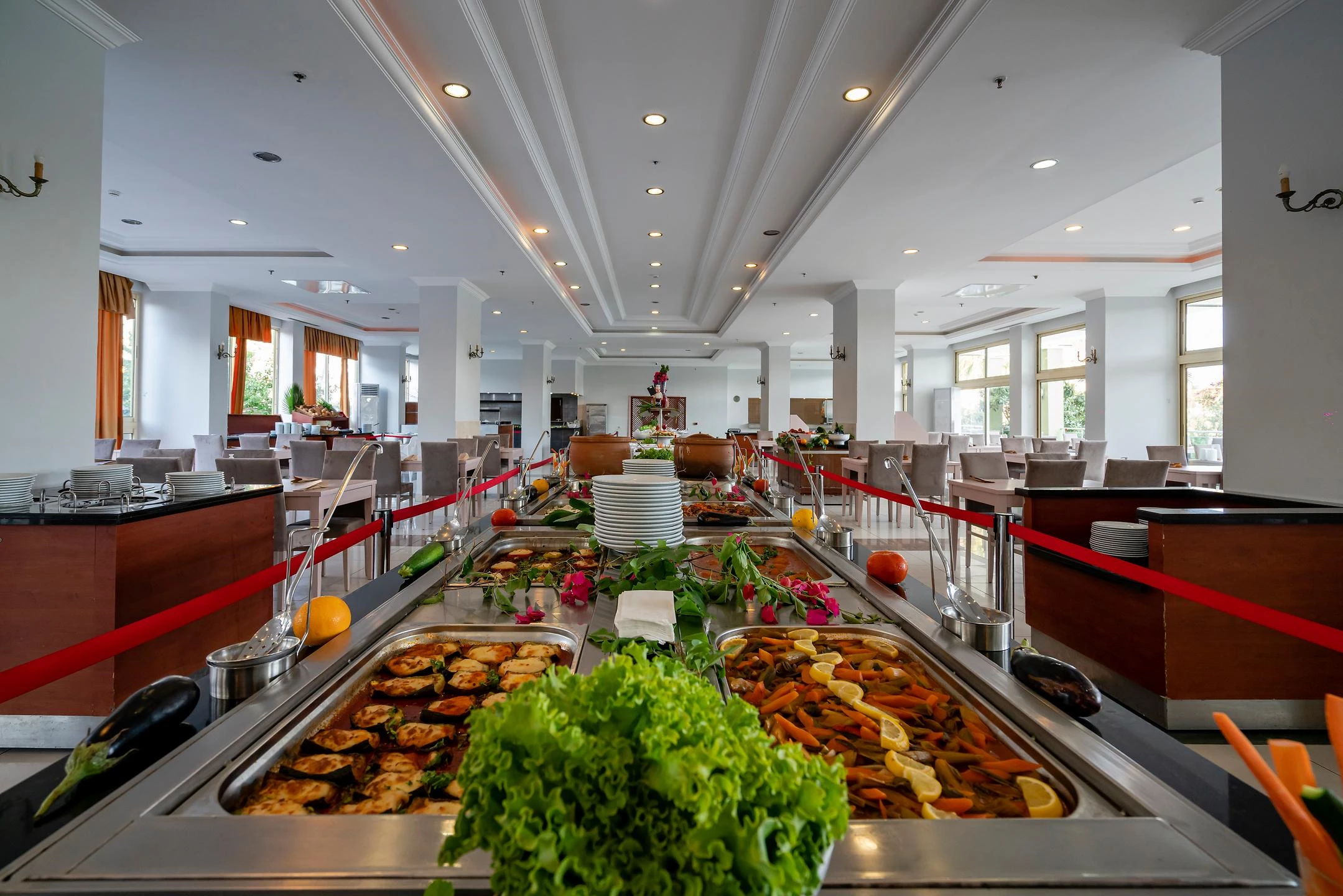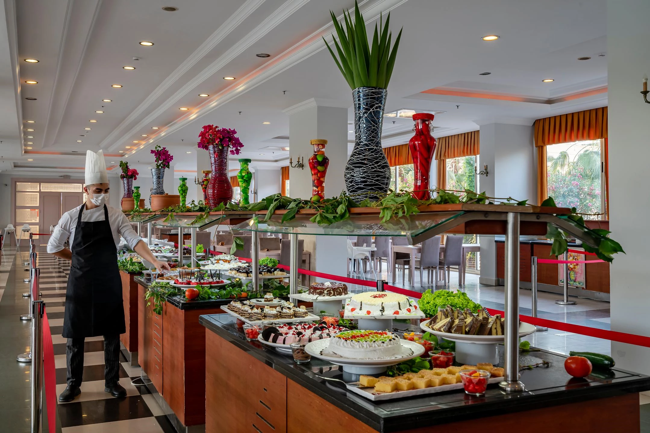 Breakfast, lunch and dinner buffet meals are free. Local alcoholic and non-alcoholic drinks within the brands determined by the facility are free of charge for 24 hours. The minibar contains 0.5 l of water per person on the day of arrival and is replenished daily.