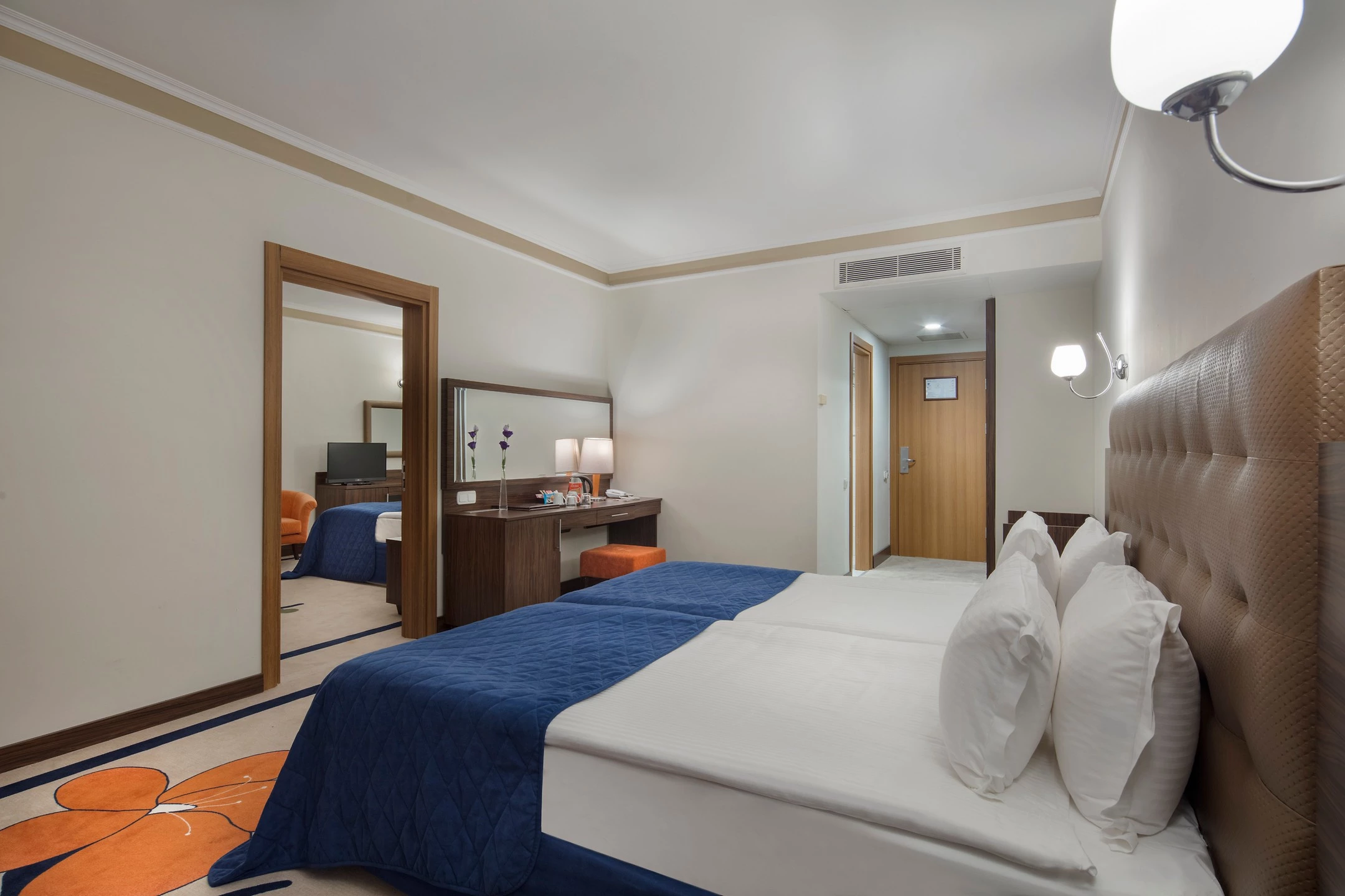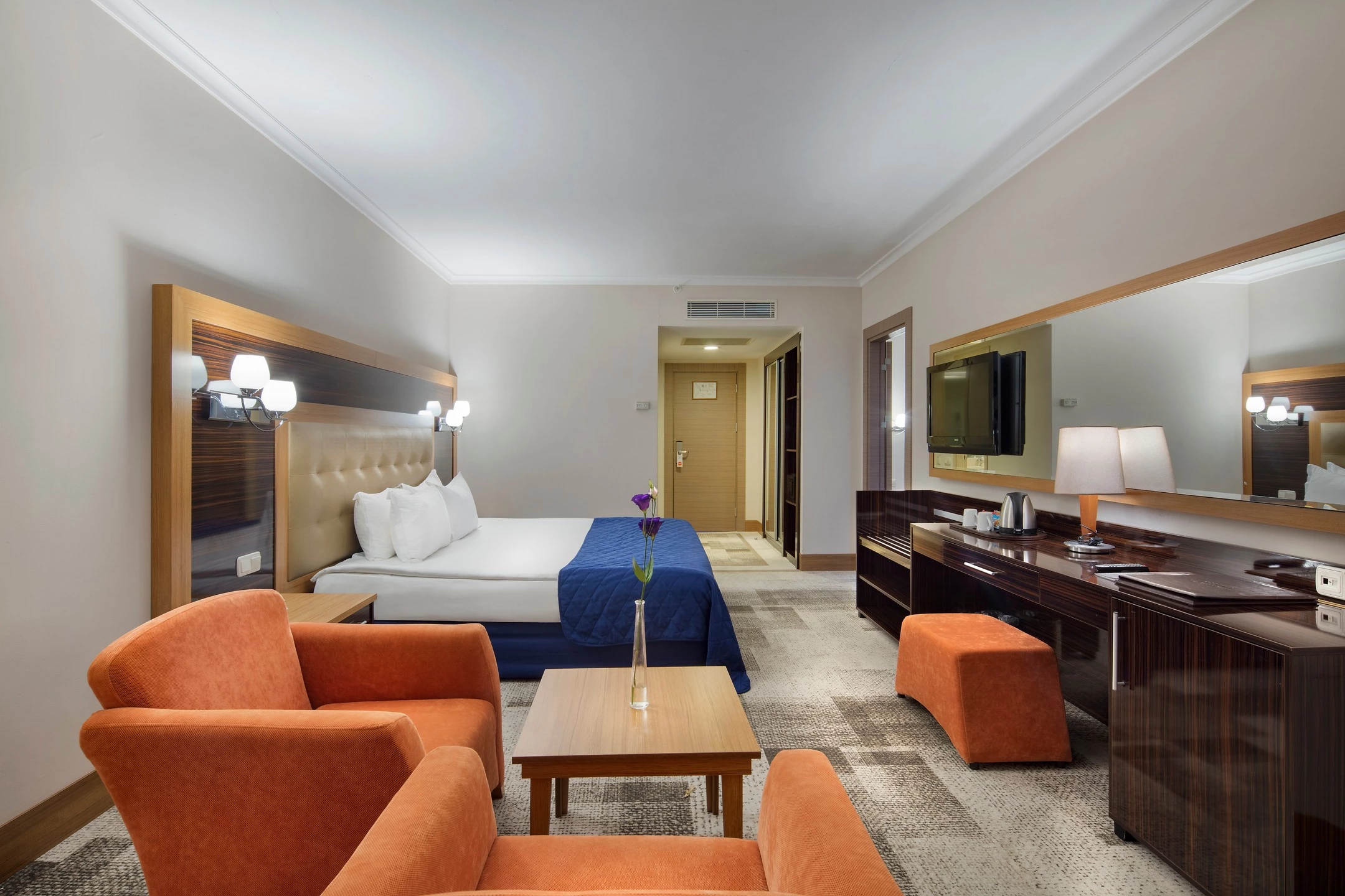The facility, which has 744 spacious and comfortable rooms, has one of the largest meeting hall capacities in the Mediterranean. You can also choose it for business trips.