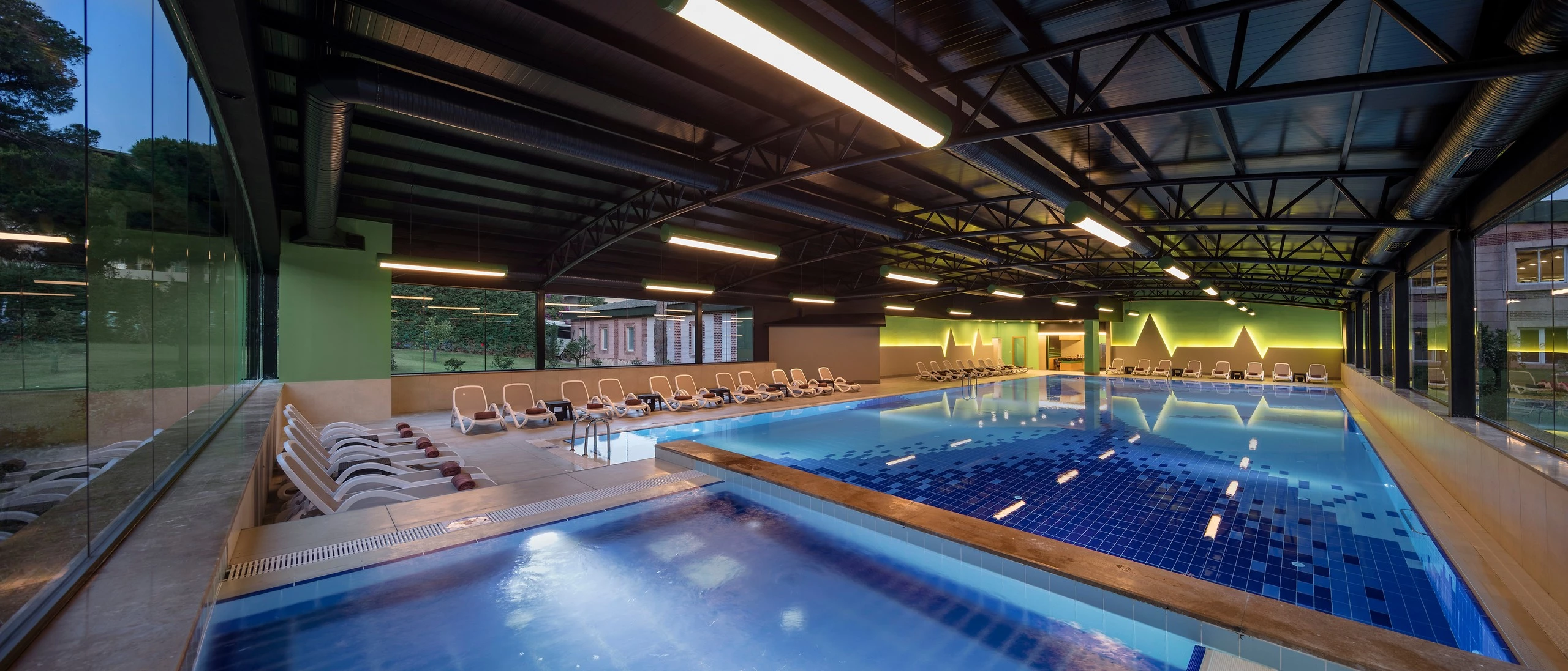 You can swim in the indoor and outdoor swimming pools of the facility and have the opportunity to have fun in the aquapark. In addition to these, you can rest and renew both mentally and physically in the SPA and wellness section.