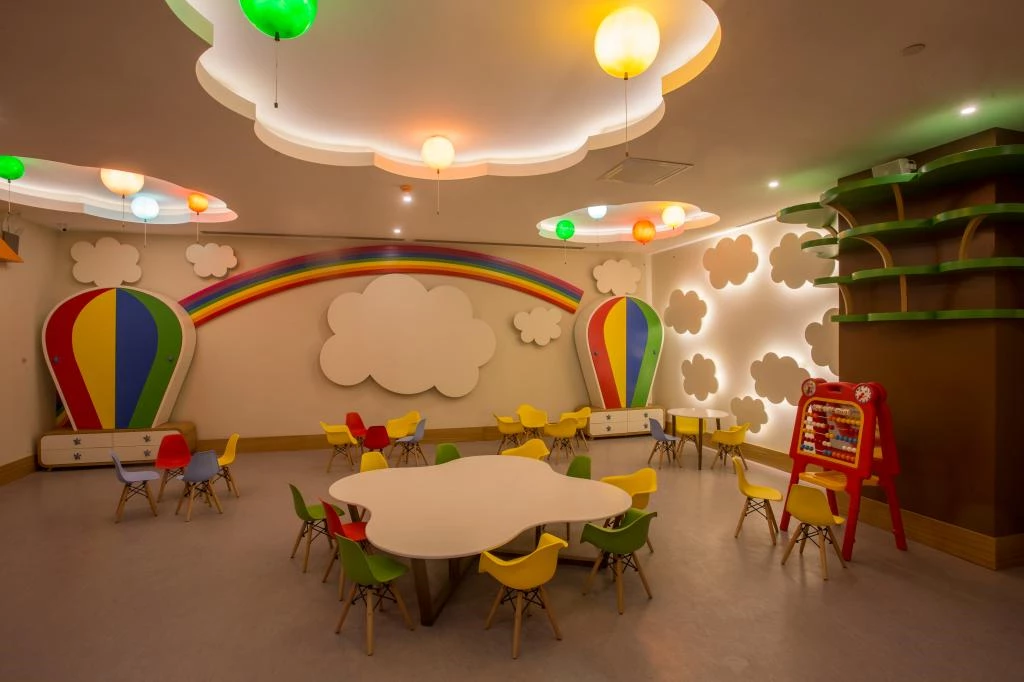 Sleeping room, activity room, baby food preparation corner, children's pool, disco, children's club, playground, paid babysitting services are available for children aged 4-12.