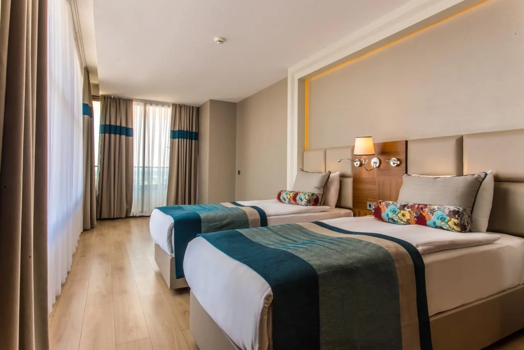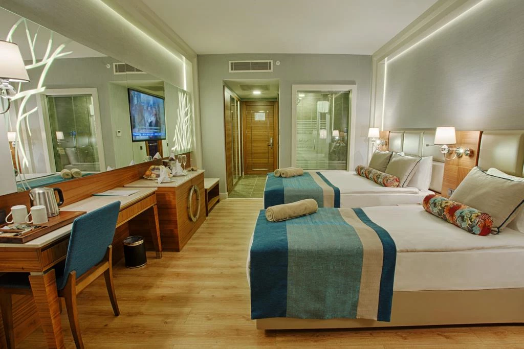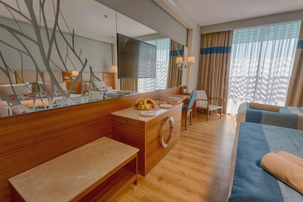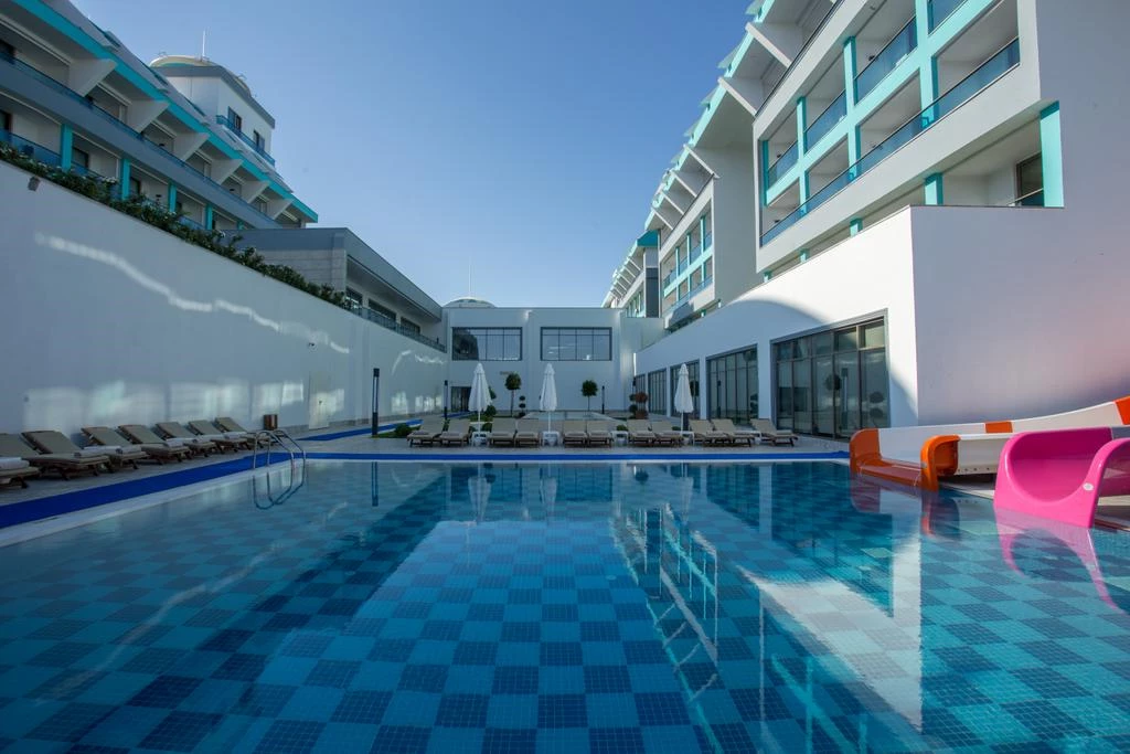 You can have your meals in the a la carte restaurant, outdoor restaurant and indoor restaurant in the facility. You can find entertainment and relaxation opportunities with indoor and outdoor swimming pools. You can spend pleasant moments doing water sports with banana, pedalo, jetski, canoe, catamaran, surfing and sailboat in the facility.