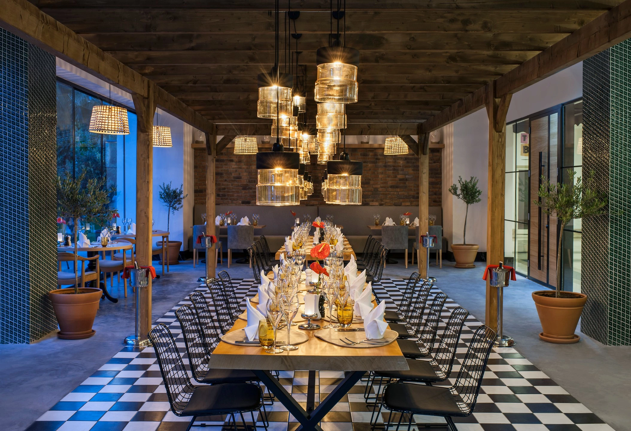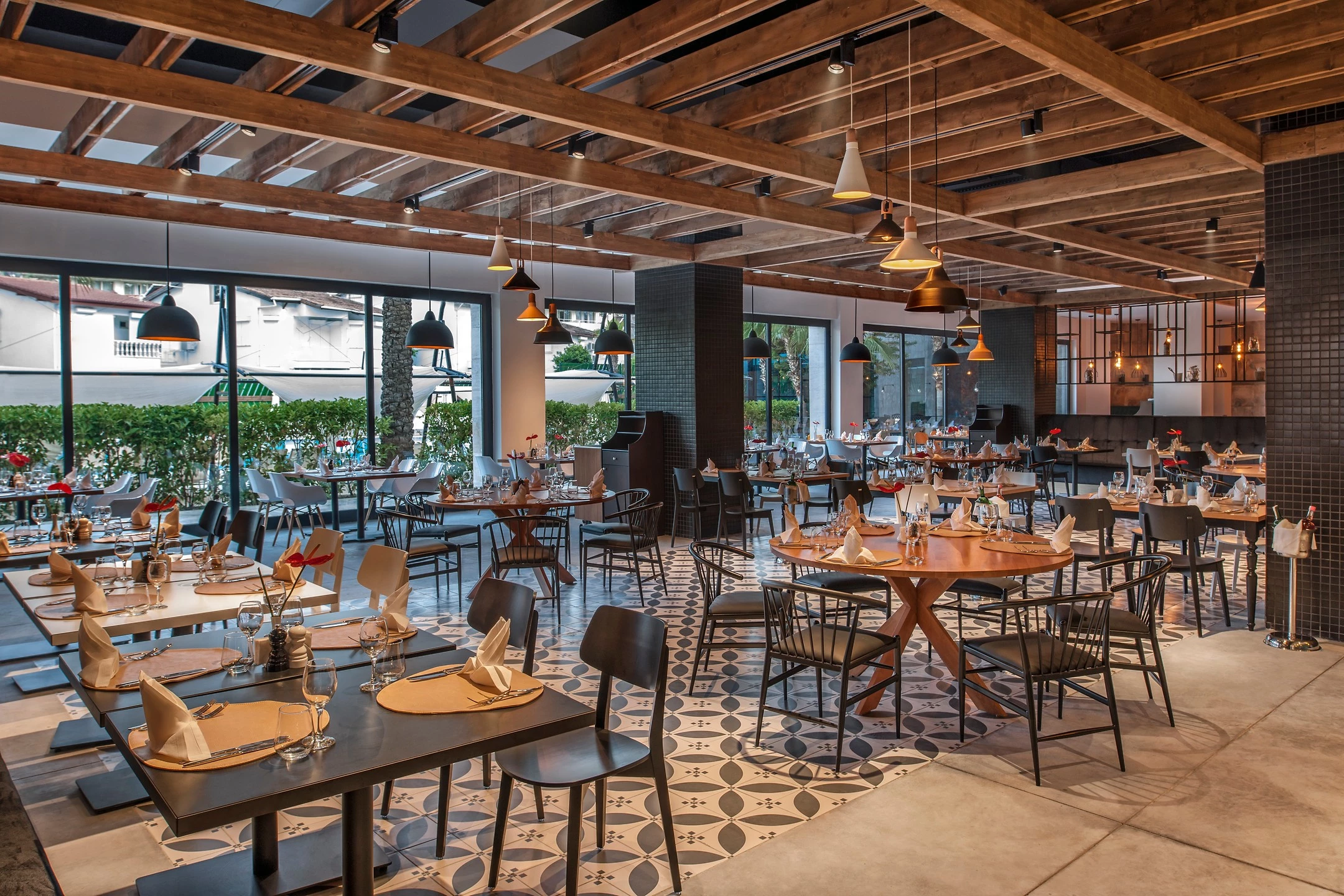 DoubleTree By Hilton Antalya Kemer, which offers its guests a rich world in terms of taste; 1 main restaurant, 1 snack restaurant, BBQ A la Carte Restaurant (with charge), Punch Sushi A la Carte Restaurant (with charge), Turkish Court A la Carte Restaurant (Turkish Cuisine, with charge), Mediterranean Breeze A la Carte Restaurant (Mediterranean Cuisine, It provides service with 5 a la carte restaurants, including the Steak House (with charge) and the Steak House A la Carte Restaurant (Steak and Burger, Paid). There are also 6 bars, 3 concept outlets and 1 mobile beverage car.