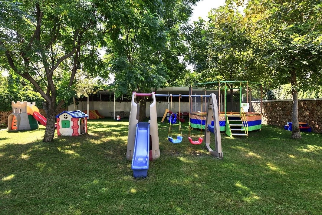 For child guests in the facility; indoor and outdoor children's pool, water slide, baby bed (on request), high chair, baby carriage (with deposit upon request) and babysitter (with reservation and hourly charge). For children aged 4-12, there is a mini club serving between 10.00-17.30.