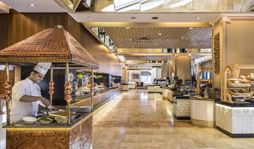 In All Inclusive accommodation, open buffet meals in the morning, lunch and evening are free. Local and foreign alcoholic and non-alcoholic drinks within the brands determined by the facility are free of charge for 24 hours in the Lobby Lounge. Minibar is replenished with 2 water, 1 soft drink (cola, fanta, soda, cold tea) and 1 beer each day. A la carte restaurants with reservation and charge. Lounge Lounge provides service 24 hours a day. Tropic Bar serves between 10.00-00.00. Room service is chargeable.